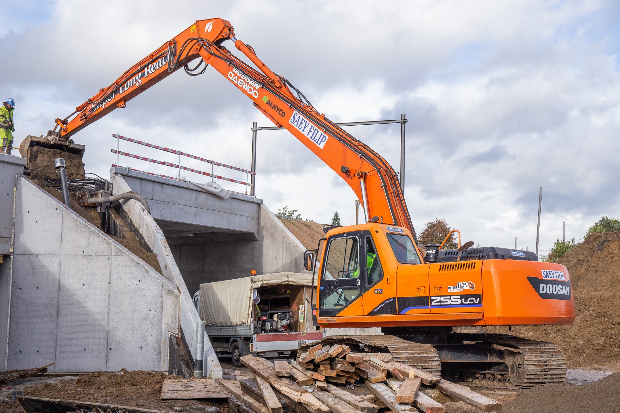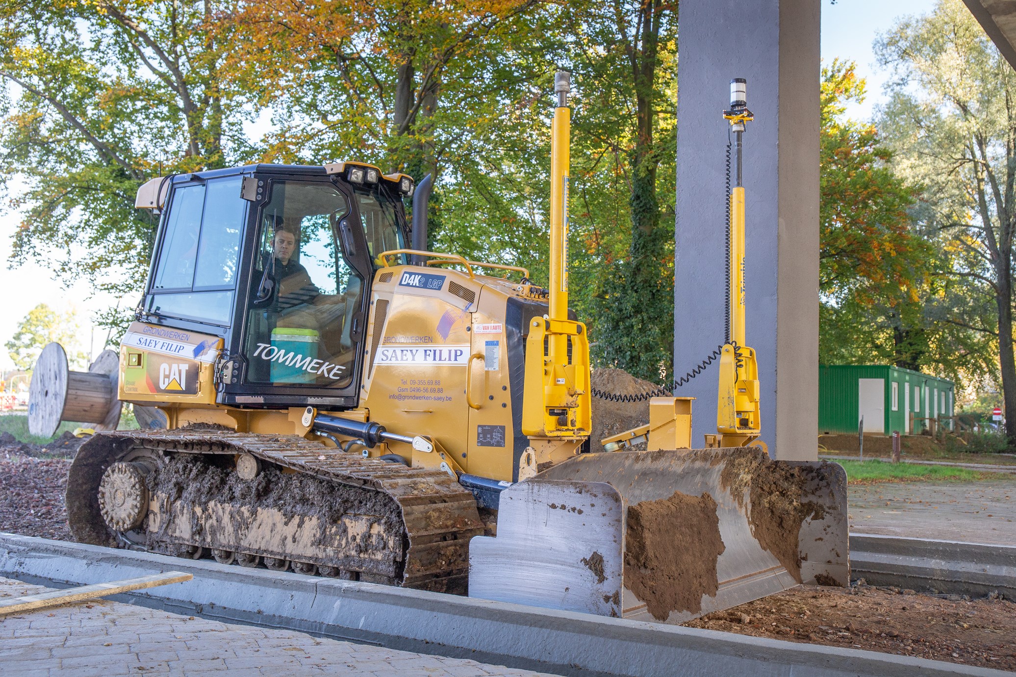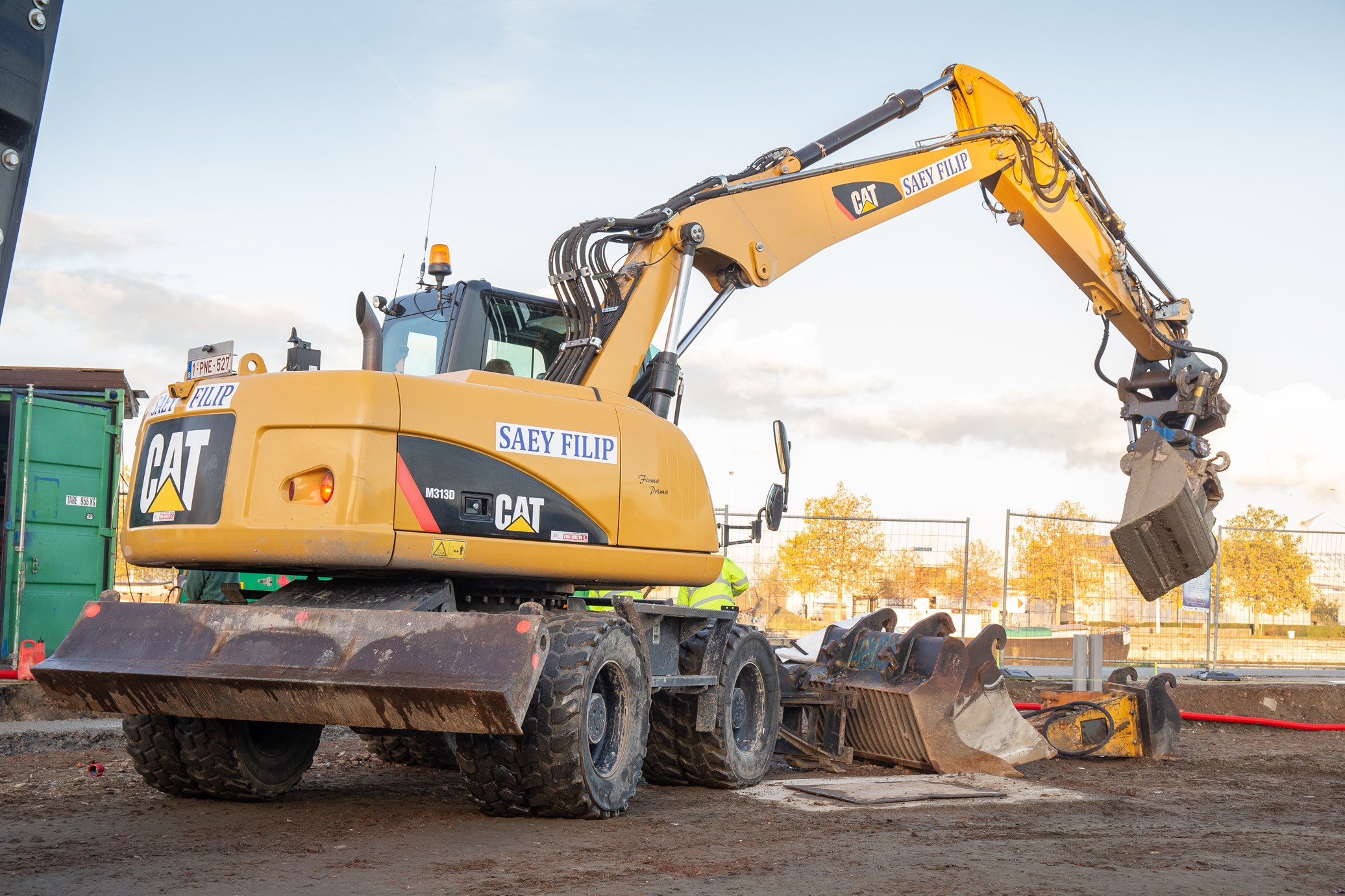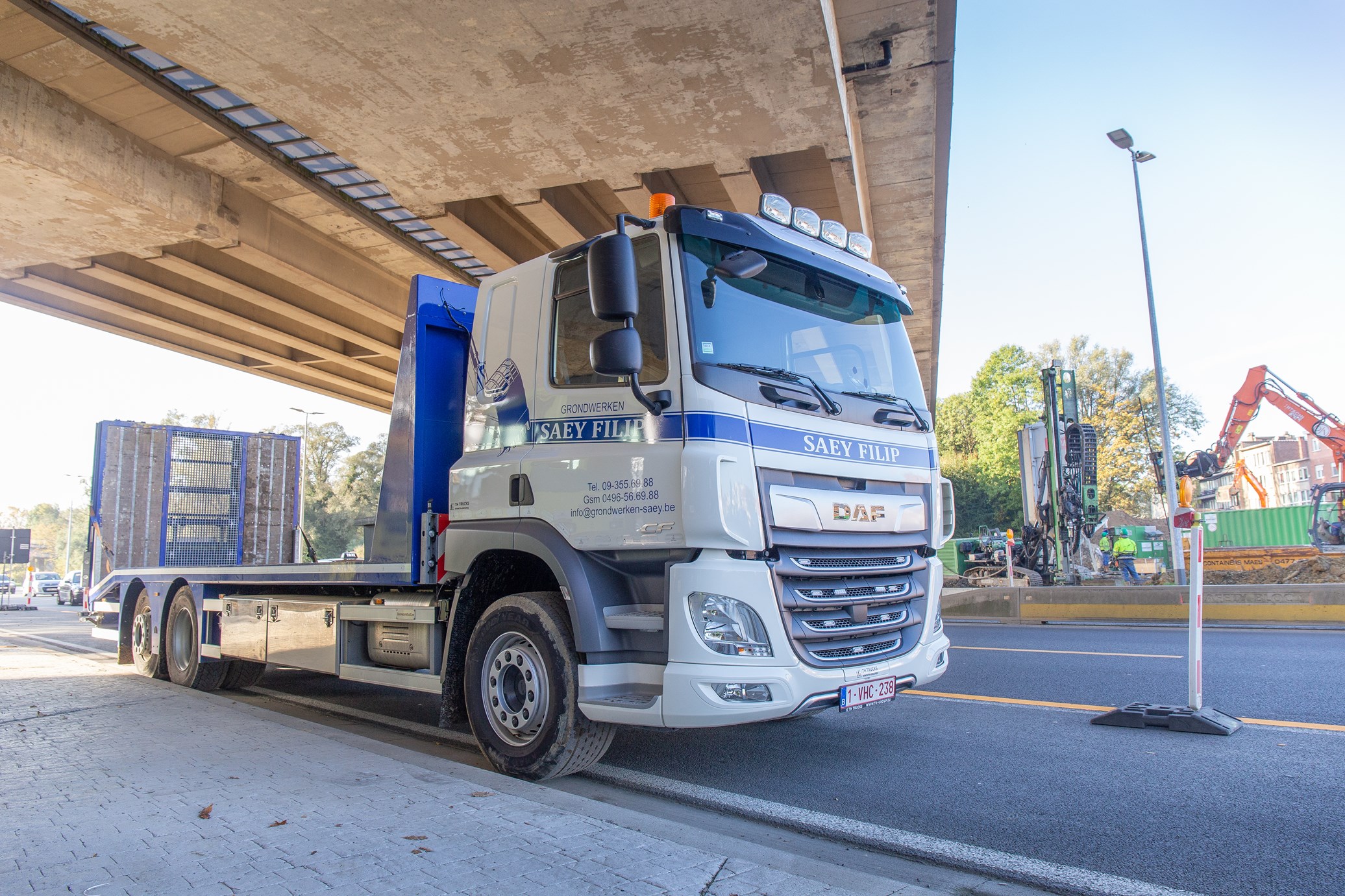 Filip Saey (49) uit Oostakker startte zelf in 1998 grond- en nivelleringswerken Saey Filip op. Het begon allemaal als een eenmanszaak met één minigraver van 3.5 ton. Momenteel stelt Filip 25 mensen tewerk en hebben ze een machinepark van ongeveer een 70-tal machines. Waar in het begin vooral ingezet werd op tuinbouw, werkt het bedrijf nu grotendeels in de wegenbouw. Daarnaast is het Filip ook actief in de landbouw en tuinbouw. Bij verschillende landbouwers wordt genivelleerd, grachten geruimd en bomen gesnoeid. Twee jaar geleden stapte ook dochter Lisa (19) in het bedrijf. Hierdoor werden er verschillende extra investeringen gemaakt. Filip zelf regelt momenteel de planning van de machines, terwijl dochter Lisa de planning regelt van het transport.