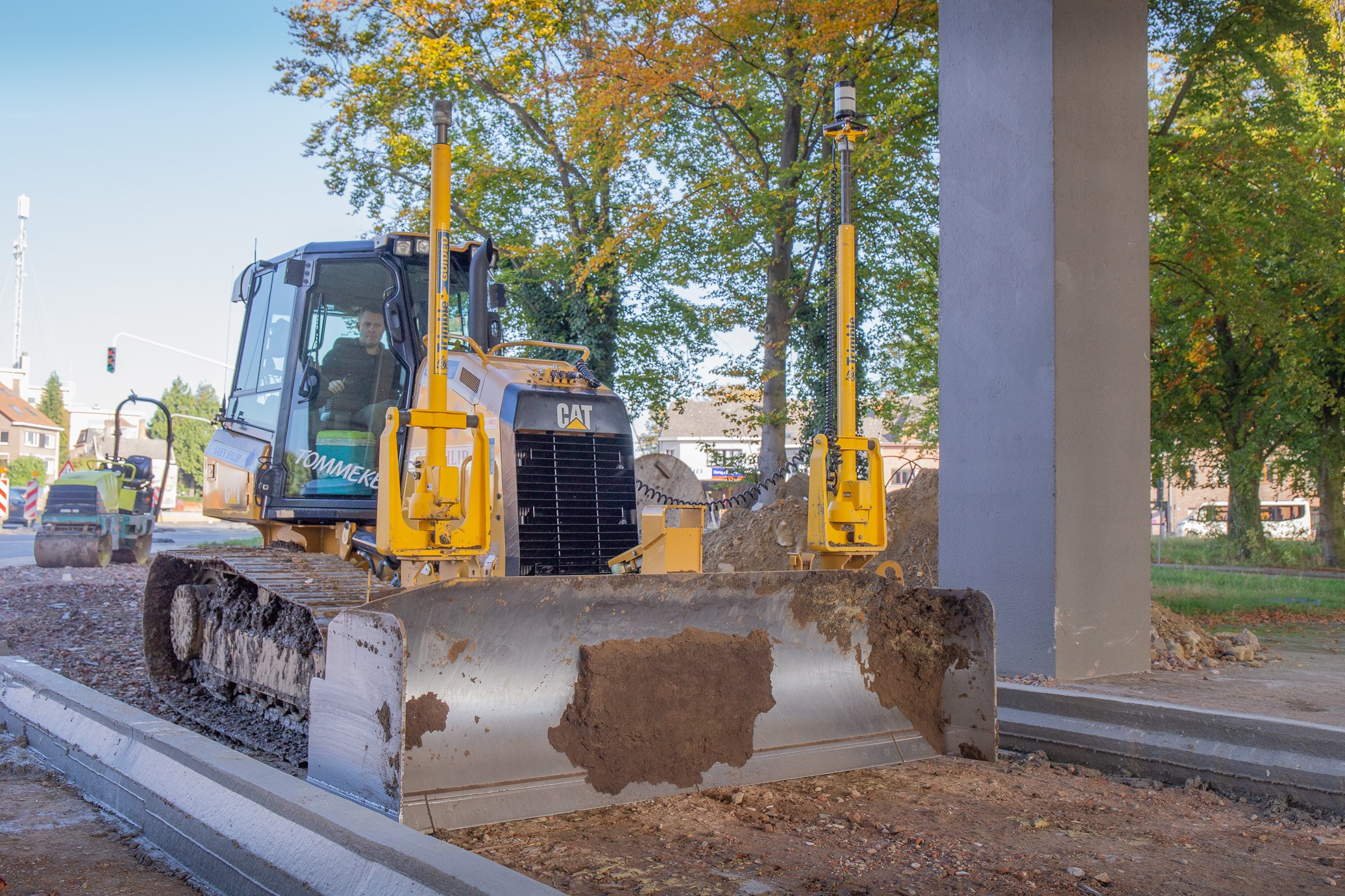 “Nivelleren met een laser en een controlebox was begin 2000 het van het”, lacht Filip. Hij was zelf één van de eerste in de regio die investeerde in zo’n soort systeem. “De klanten vroegen zelf meteen achter de nieuwste technologieën, dus kon ik niet anders om in dat verhaal mee te stappen.” De eerste projecten waren enorm duur omdat de aanschafprijs van een lasersysteem in die tijd enorm hoog lag. “Na vijf jaar heb ik de prijzen zien zakken waardoor de projecten ook goedkoper werden. Het is wel enorm spijtig dat je zo’n hoge prijs moet betalen om als één van de eerste gebruik te kunnen maken van die technologie, maar ik heb geen spijt dat ik die stap destijds heb gezet.” In het begin reed Filip rond met een Case IH Magnum 7140 met een kilver van 3,20 meter. Later werd ook geïnvesteerd in een kleinere Fiat 55-66 met 1,80 meter kilver waarop hetzelfde lasersysteem werd geïnstalleerd als op het grote kilverbord. “We konden toen al onder twee hellingen rijden in de serres zelf, volgens het dakprofiel en volgens de lengte.”. Nu is het bedrijf geëvolueerd naar verschillende gps-systemen en één totaalstation. Ook op verschillende bandenkranen en rupskranen zit gps. “We zien dat zo’n soort technologie vaker gevraagd wordt door de aannemer zelf, ook het gebruik van tiltrotators stijgt enorm.”