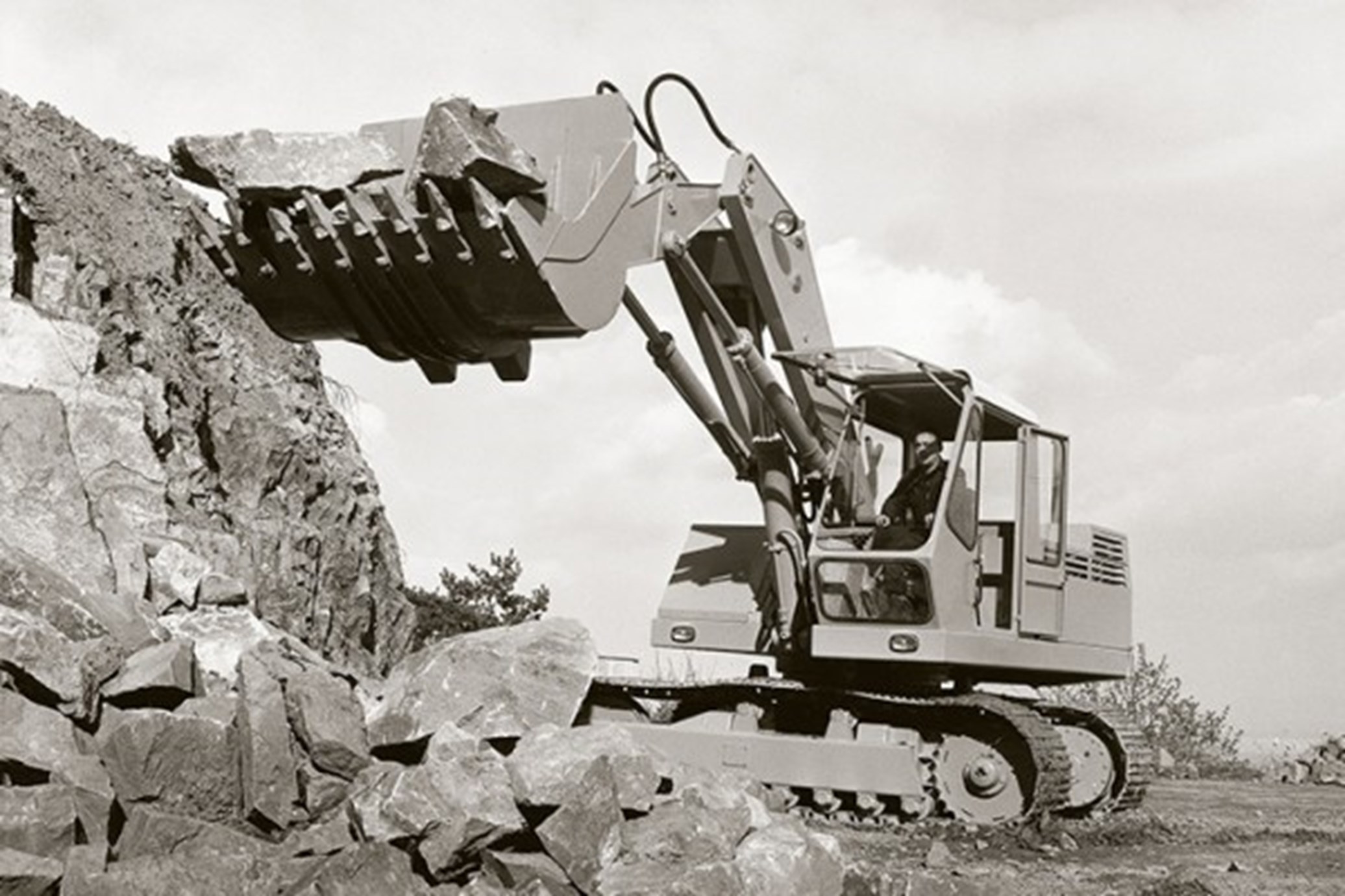 De allereerste graafmachine van Liebherr in 1954: de L300. Deze was vier keer lichter dan de gehuurde machine die Hans Liebherr aanzette tot de ontwikkeling ervan.