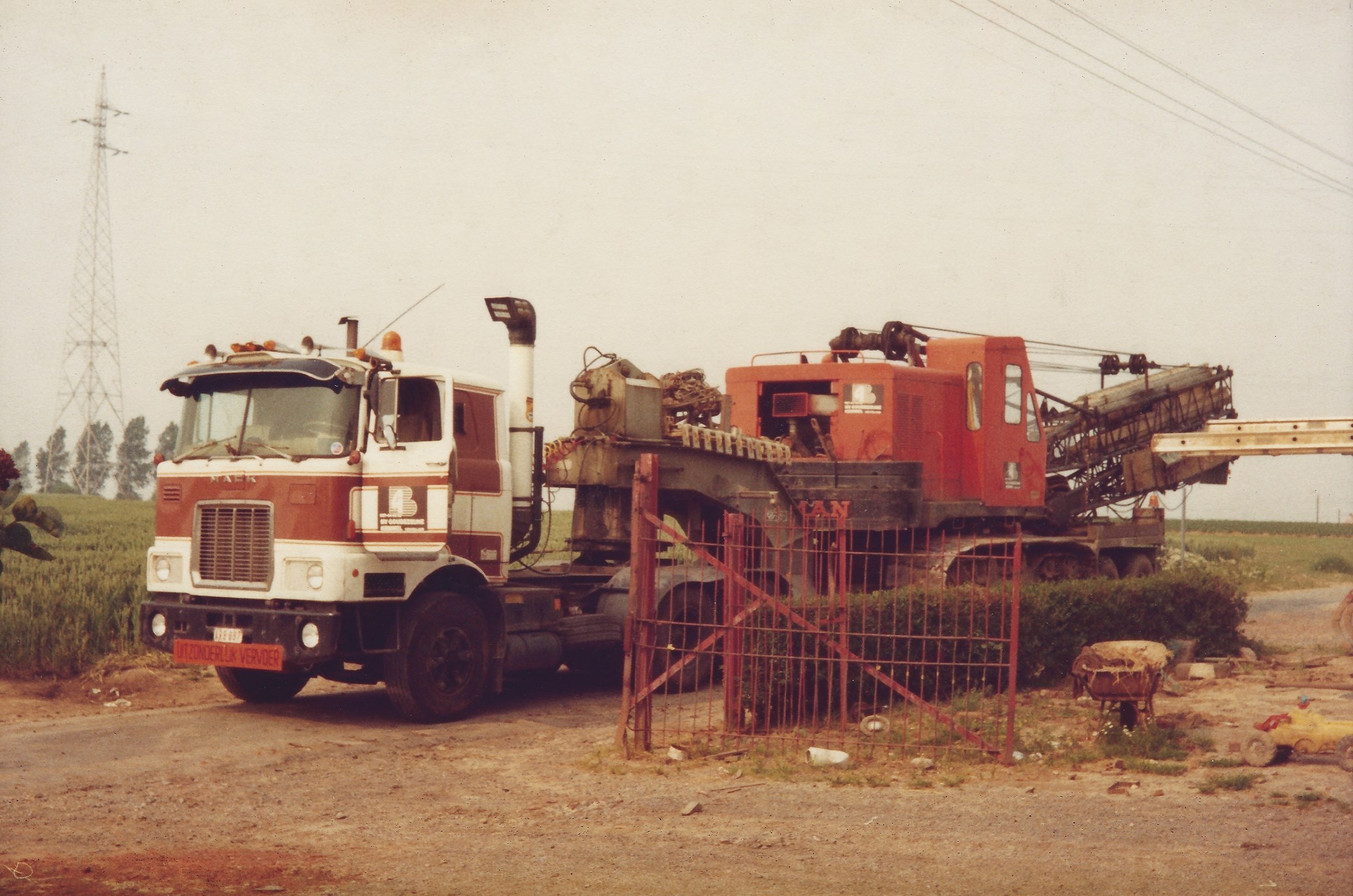 Het voormalige Goudezeune uit Kemmel stuurde midden jaren 80 deze stoere Mack de baan op voor het verplaatsen van de montagekraan. (Foto De oude doos.be)