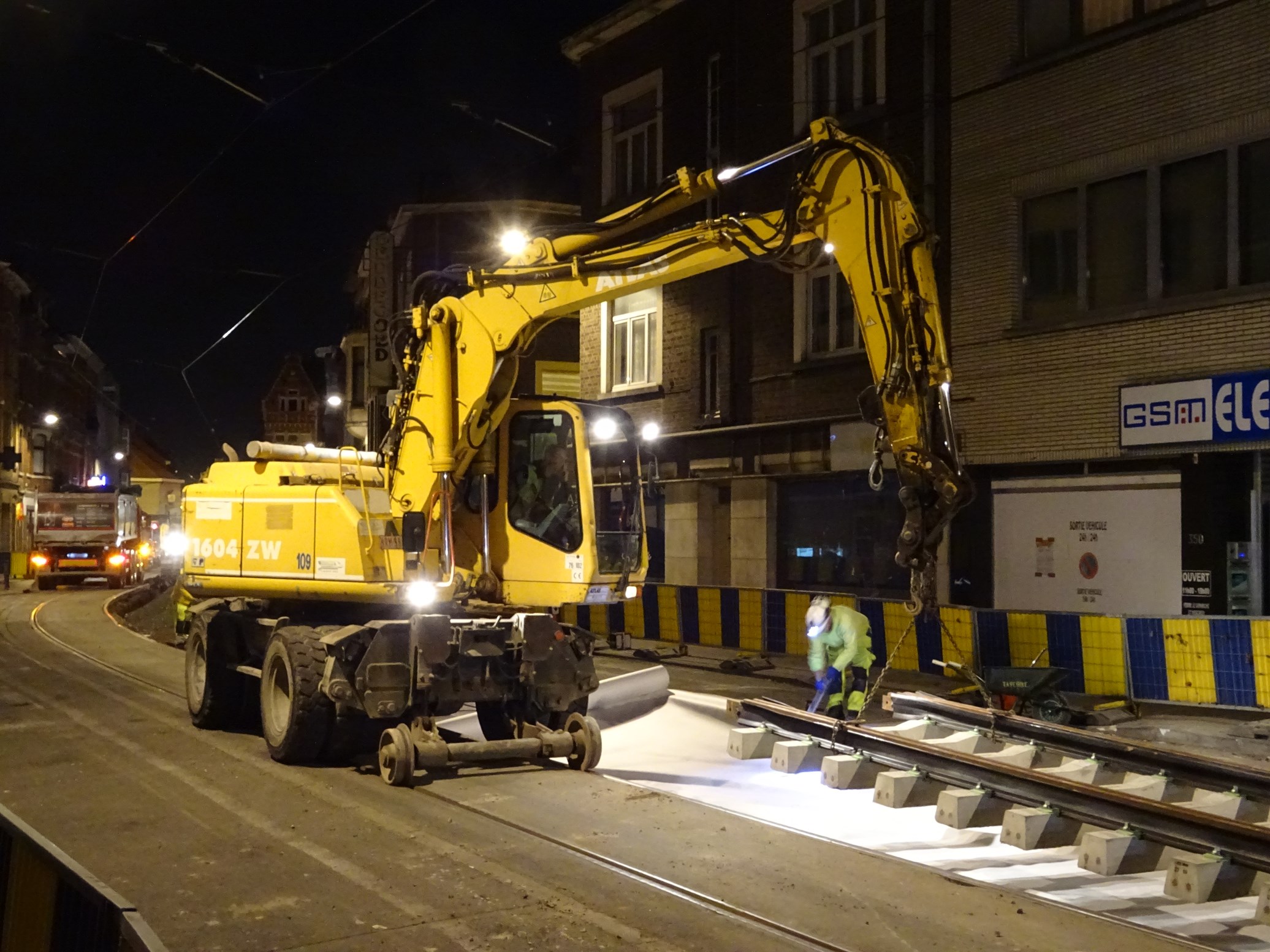 Atlas 1604ZW bij nachtelijke spoorwerken voor de Brusselse Tram (PhotoFaber)