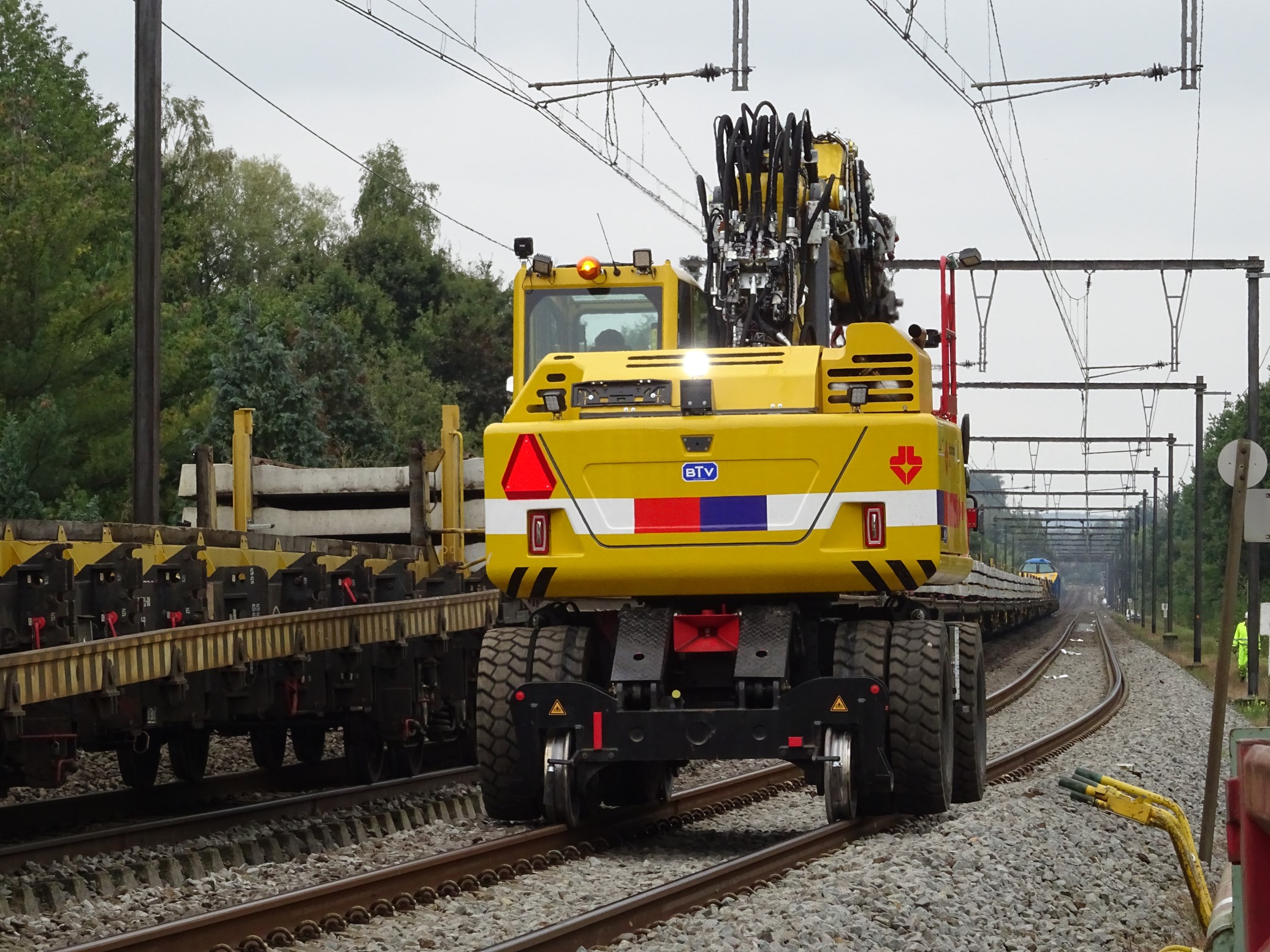 Atlas spoorkraan naast een dwarsligger-vernieuwingstrein (PhotoFaber)
