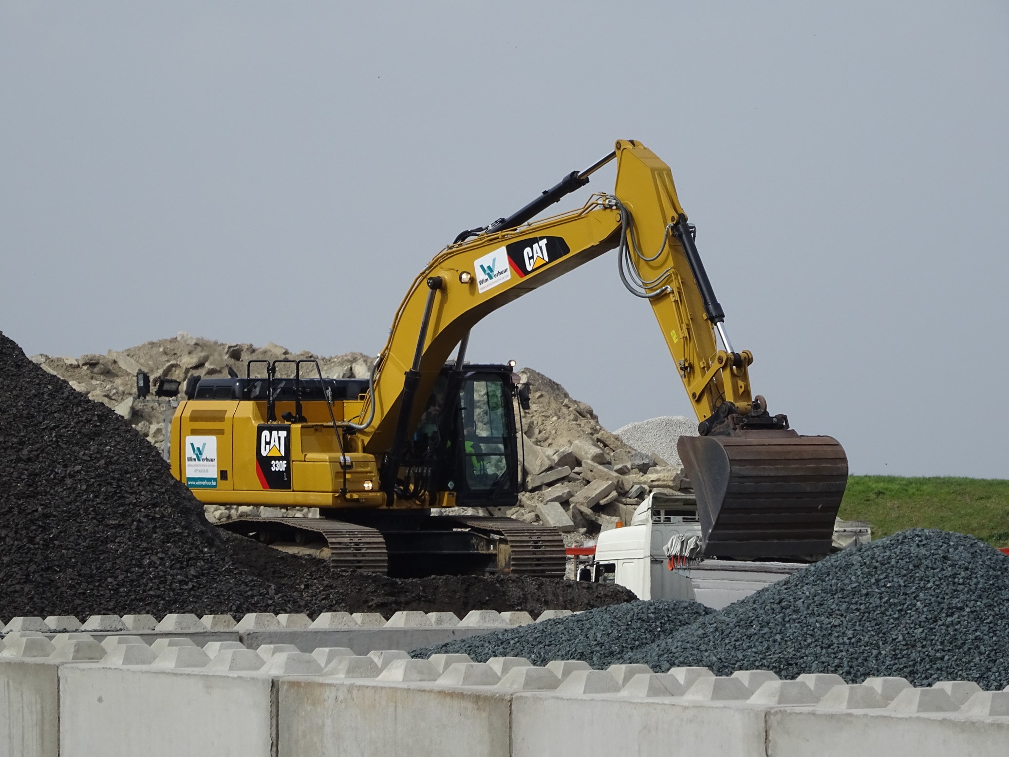 Cat330FL in actie op een tijdelijke recyclagesite (PhotoFaber)
