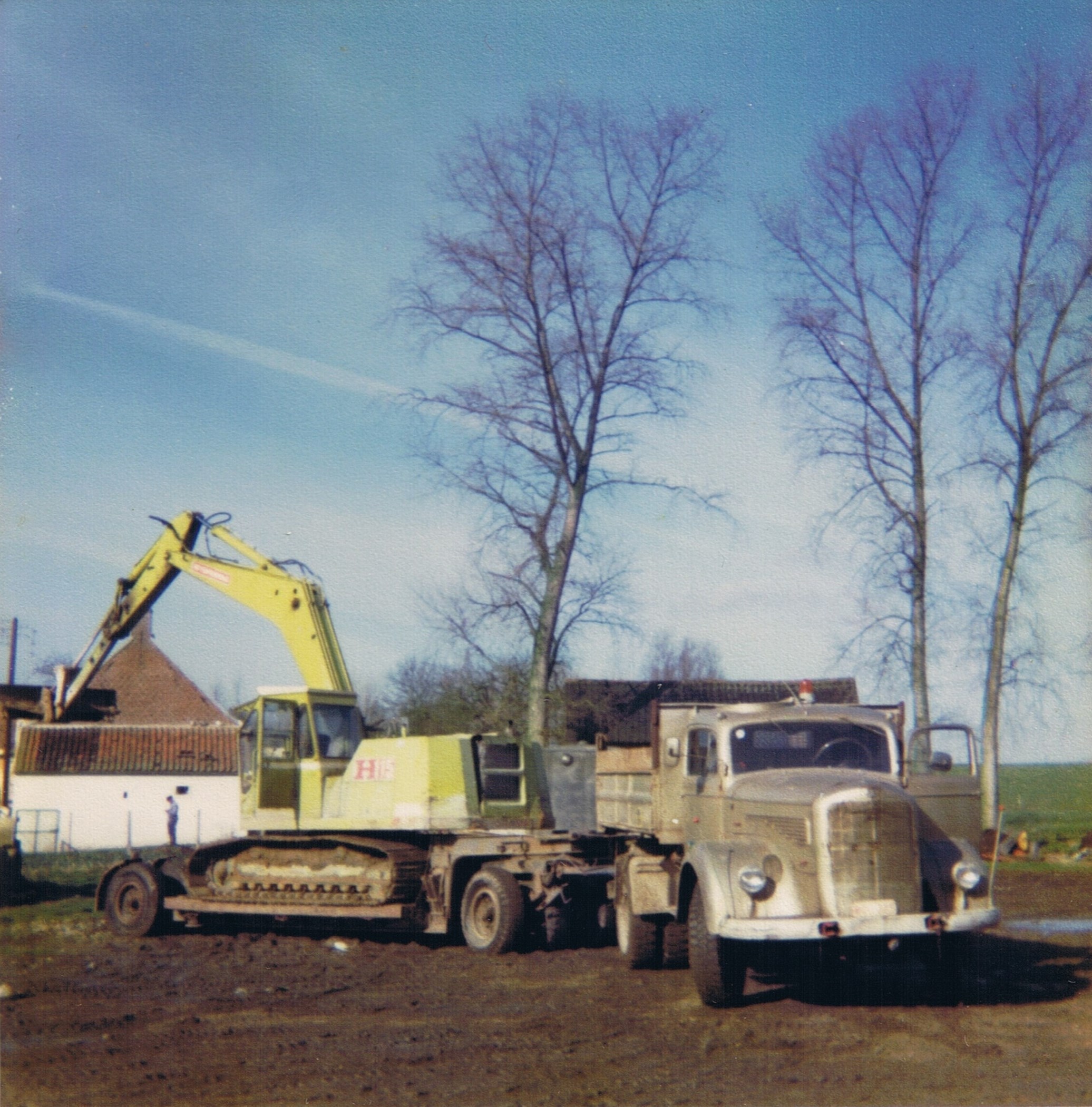 De Hydromac H 115 van loon – en grondwerken Gilbert Veys uit Wodecq ging in 1975 de baan op. (Foto de oude doos.be)