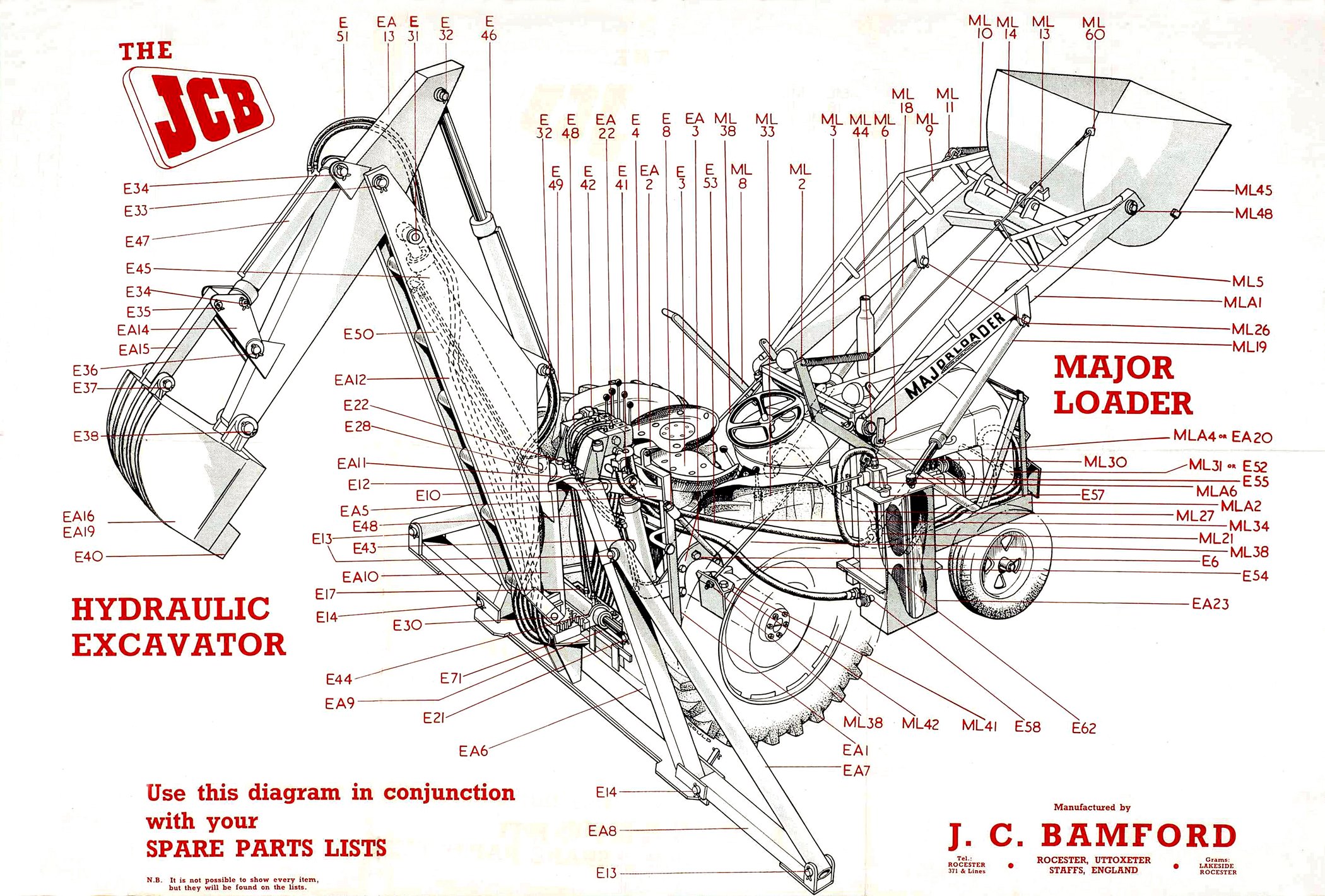 Op 23 oktober 1945 richtte Joseph Cyril Bamford zaliger, Commander van de Orde van het Britse Rijk, zijn bedrijfje op in een bescheiden garage in Uttoxeter, Staffordshire. Hij startte met deproductie van aanhangwagens met behulp van ijzer en restanten uit de oorlogstijd. Dit kleine bedrijfje groeide doorheen de jaren uit tot het bedrijf dat het vandaag is, met 22 fabrieken, waarvan 11 in het Verenigd Koninkrijk en de overige in India, Amerika, Brazilië en China. JCB stelt meer dan 12.000 mensen aan het werk.