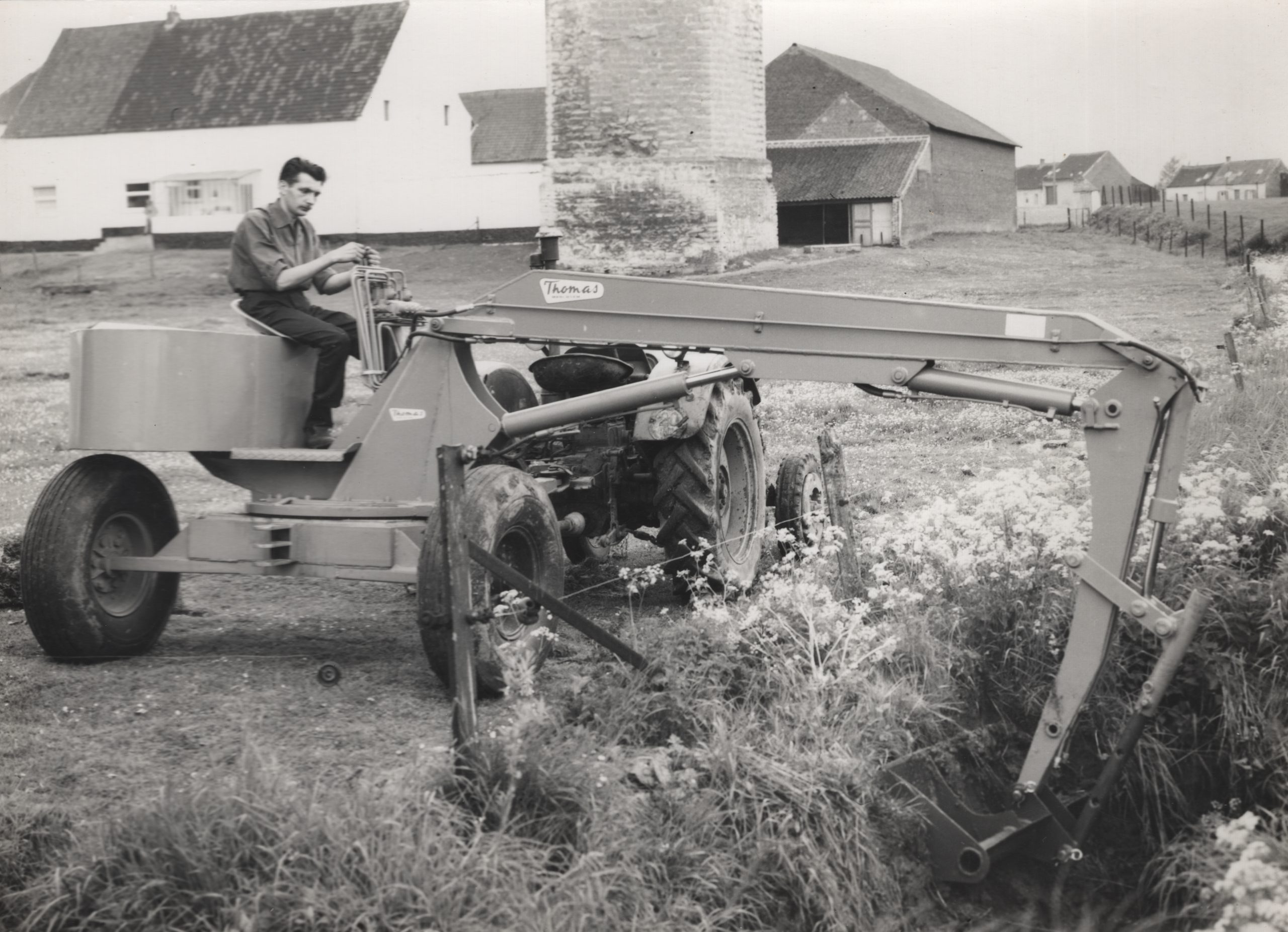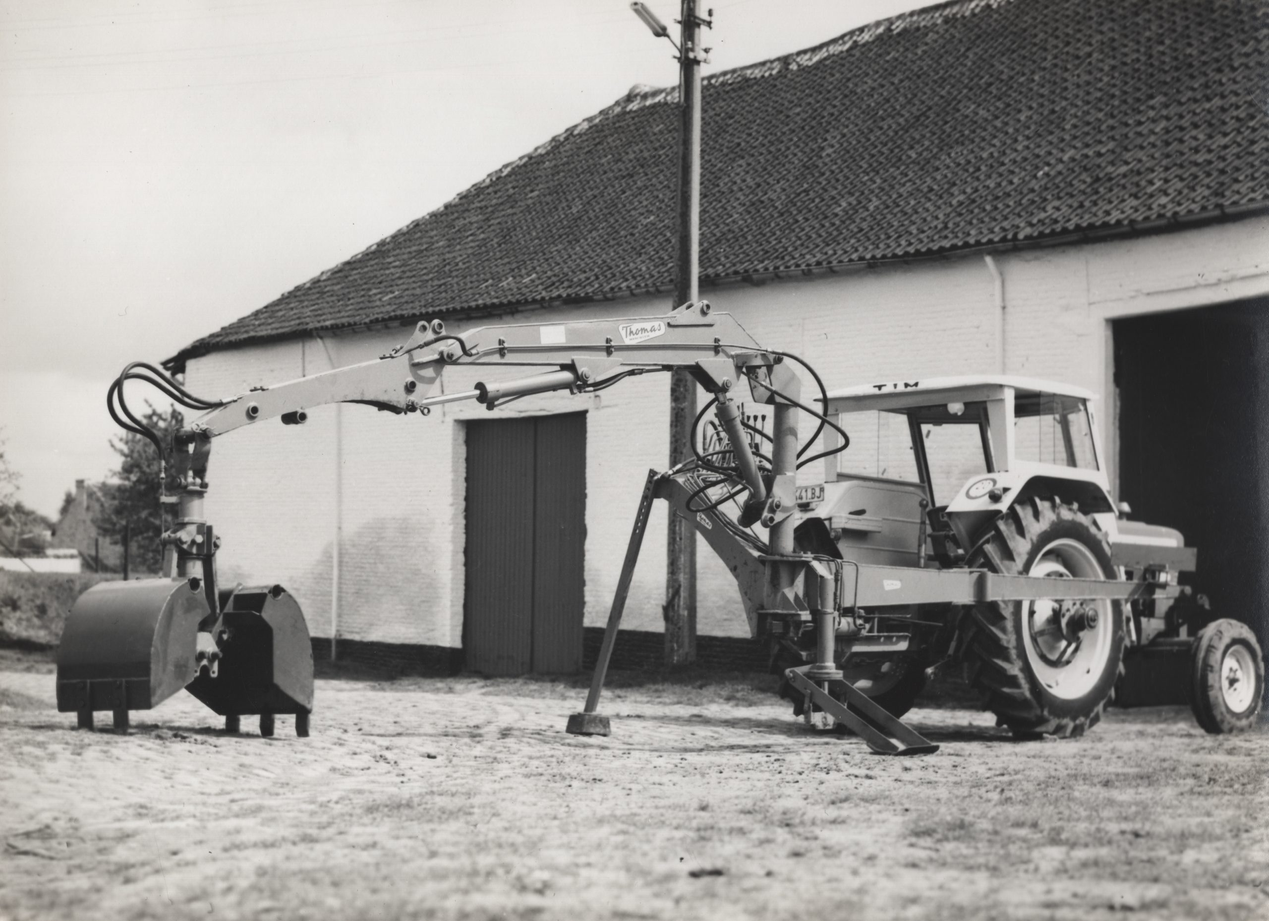 Een zeer opvallende verschijning was ook de Thomas 1300 werktuigendrager. Deze had als basis een Ford 6600. Welke werd voorzien van een panoramische stuurcabine, die extra werd beschermd door een sterk veiligheidsframe. De machine kon achteraan voorzien worden van een graafarm, vooraan van een frontlader en hefarmen voorzien van een nivelleerblad of borstel en zijdelings een klepelmaaier. Een meer dan complete graaflaadcombinatie die eenvoudig weer kon omgebouwd en gebruikt worden als een gewone trekker. Het kostenplaatje liep echter al snel op richting 913.000 Belgische franken of omgerekend 22.633 Euro. Wat in die tijd een hallucinant kostenplaatje was. Een te dure machine om competitief  te zijn met de grote buitenlandse merken als Poclain en JCB.  Vandaar de productie van deze machines na zo’n 20-tal machines werd opgeschort.