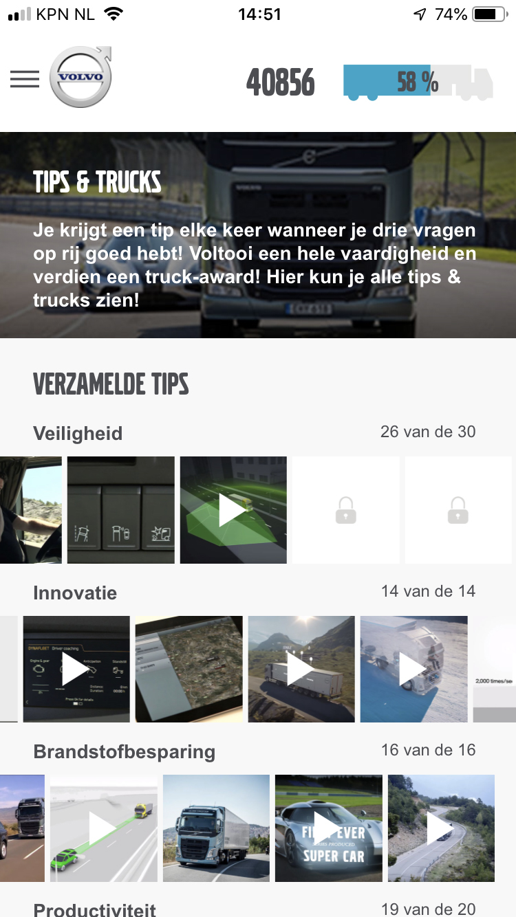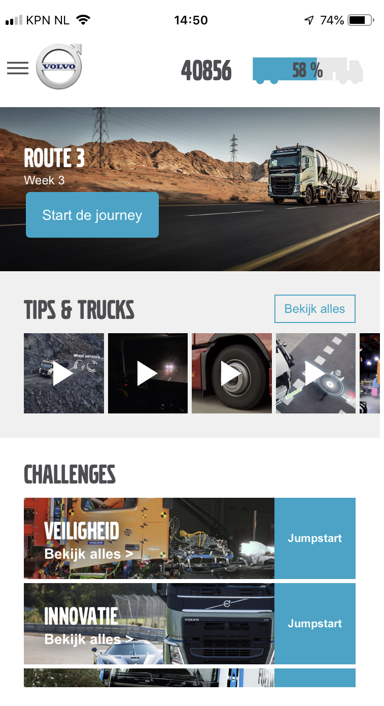 Door middel van een mobiel spel kunnen chauffeurs ervaring opdoen zowel voor, tijdens als na de aflevering. Micro-learnings, VR-ervaring, leaderboards en een interactieve inhoud helpen de chauffeur alle functies van hun vrachtwagen ontdekken. Tips komen naar voor in de app via verschillende journeys en challenges. Er is ook een koppeling gemaakt met het chauffeurshandboek . Zo wordt voorkomen dat sommige belangrijke functies niet gebruikt worden en dus een ‘under performance’ opleveren die tot ontevredenheid leidt bij de chauffeur. De App won bij de Learning Technology Awards in Londen in de categorie ‘Best Learning Technology Project’ de derde prijs.