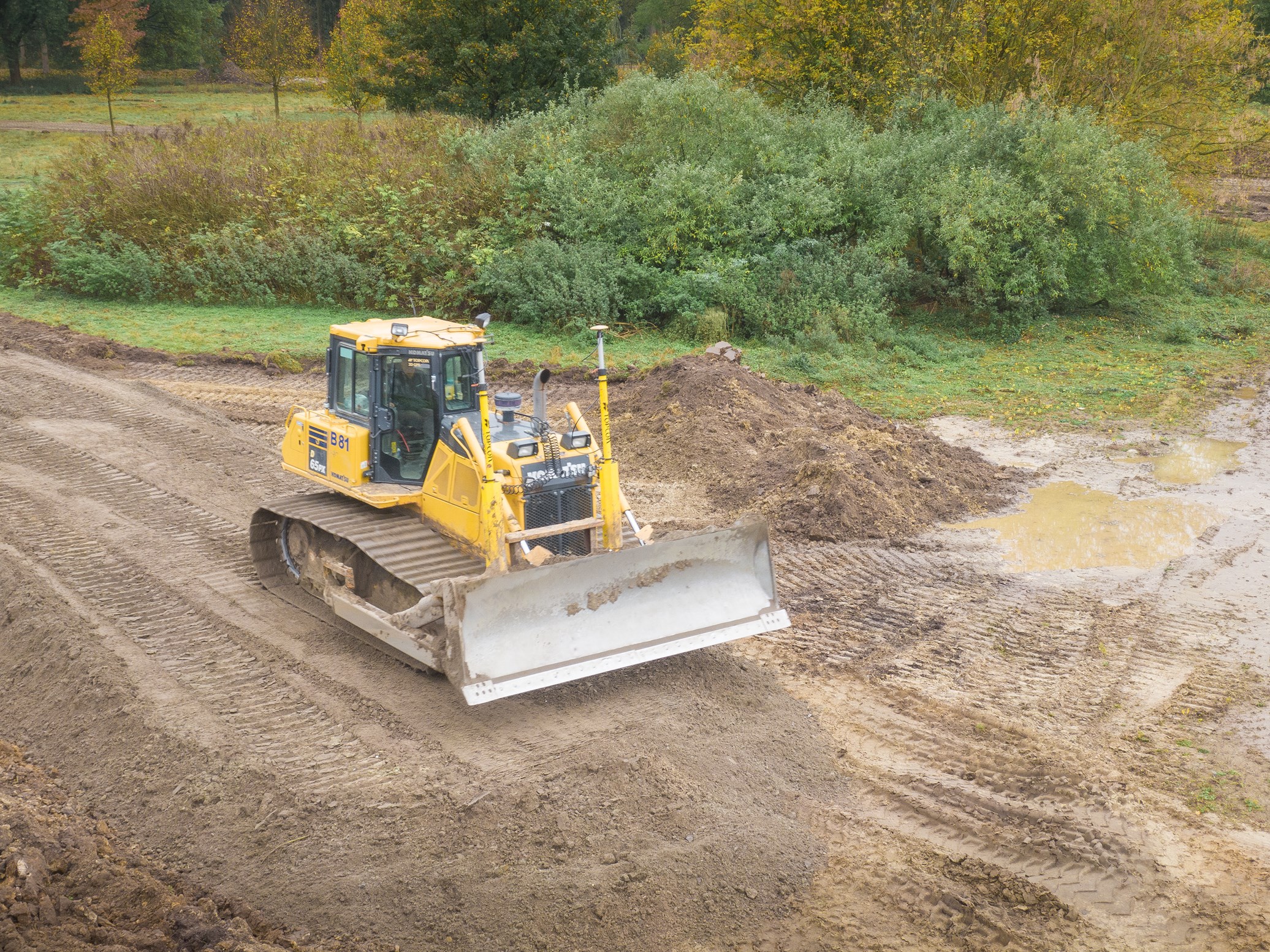 Voor het brute grondwerk zoals het opkorten van grond, afsteken van de teelaarde en het opensteken van gronden wordt een Komatsu D65 PX bulldozer ingezet. De bulldozer is uitgerust met Topcon 3D-GPS taken om het afsteken van de teelaarde precies uit te voeren. De capaciteit van het blad bedraagt 3,7 tot 5,9 m³ en het maximale motorvermogen is 164 kW.
