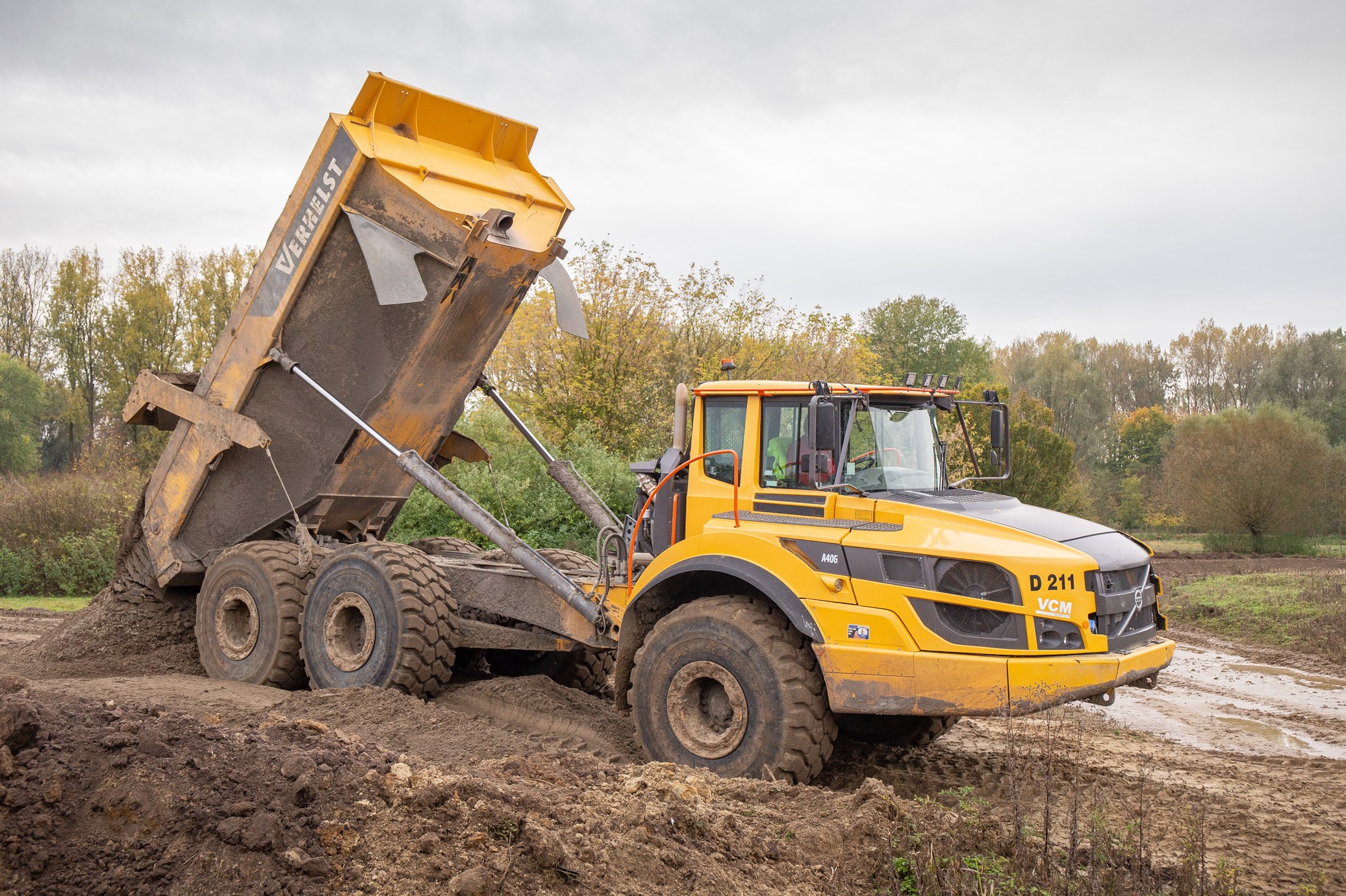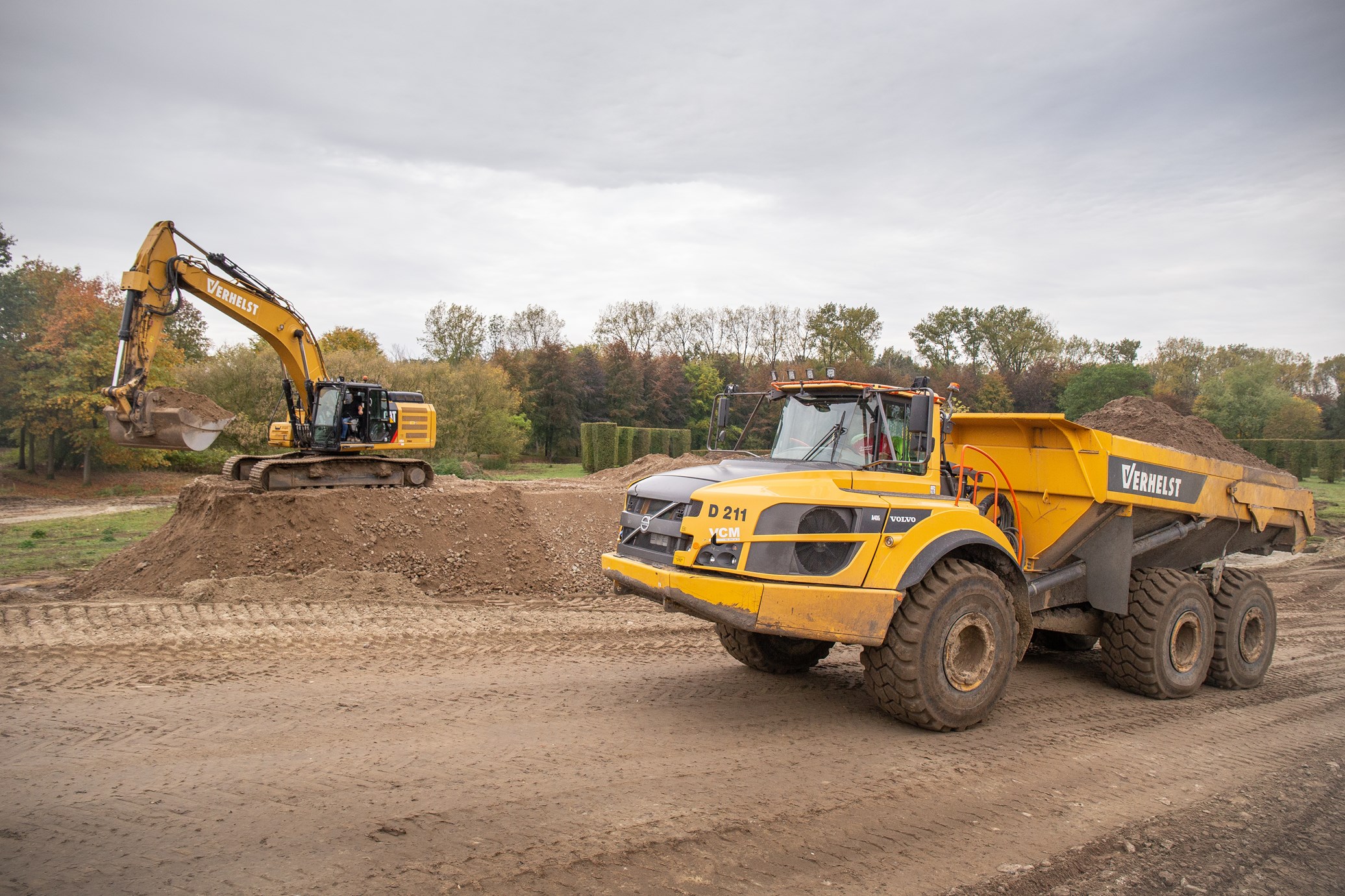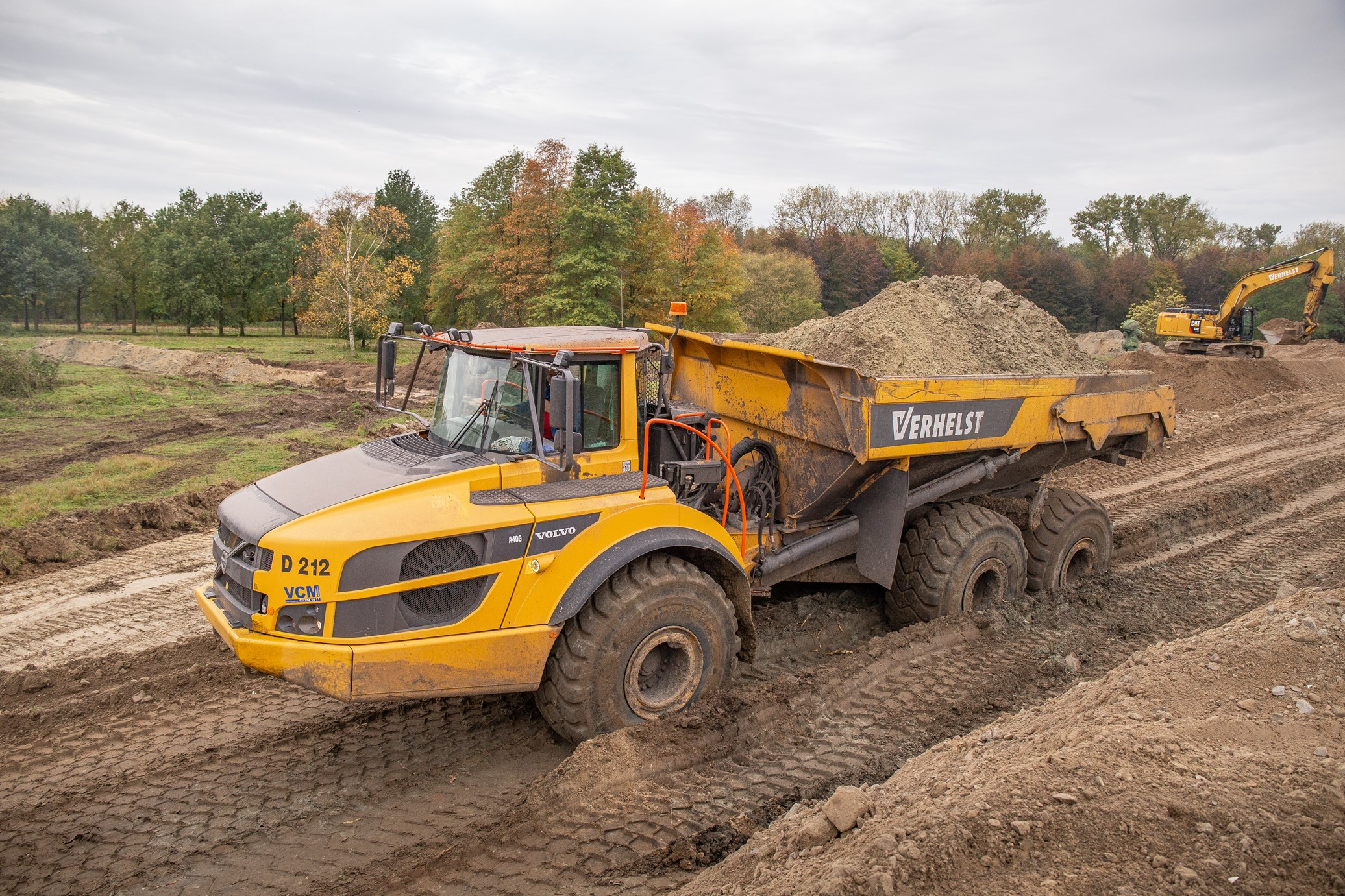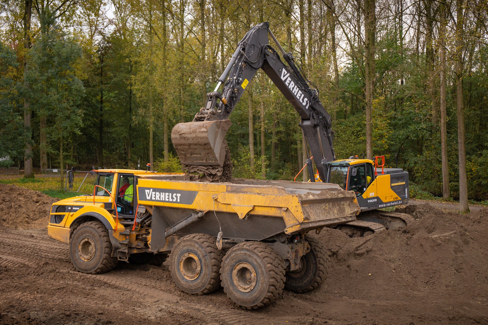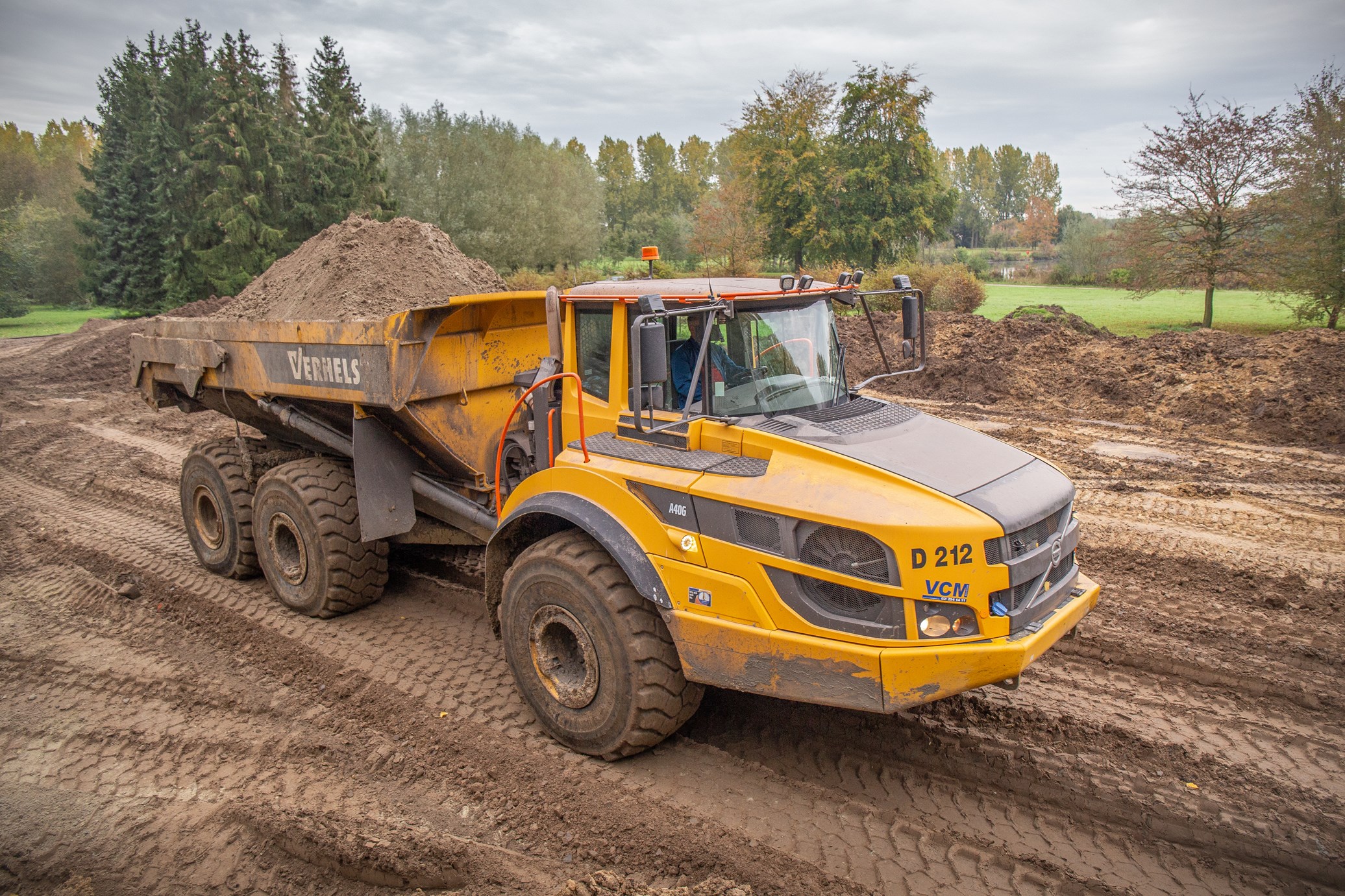 Om 60.000m³ grond te verzetten zijn er verschillende vrachtwagens en knikdumpers nodig. Het grootste deel van de grond wordt verzet door twee identieke Volvo A40G’s. De A40G kan in één keer 39 ton grond verzetten in een bak van 24m³. Om dit allemaal van A naar B te verplaatsen wordt de knikdumper aangedreven door een 350 kW sterke motor.
