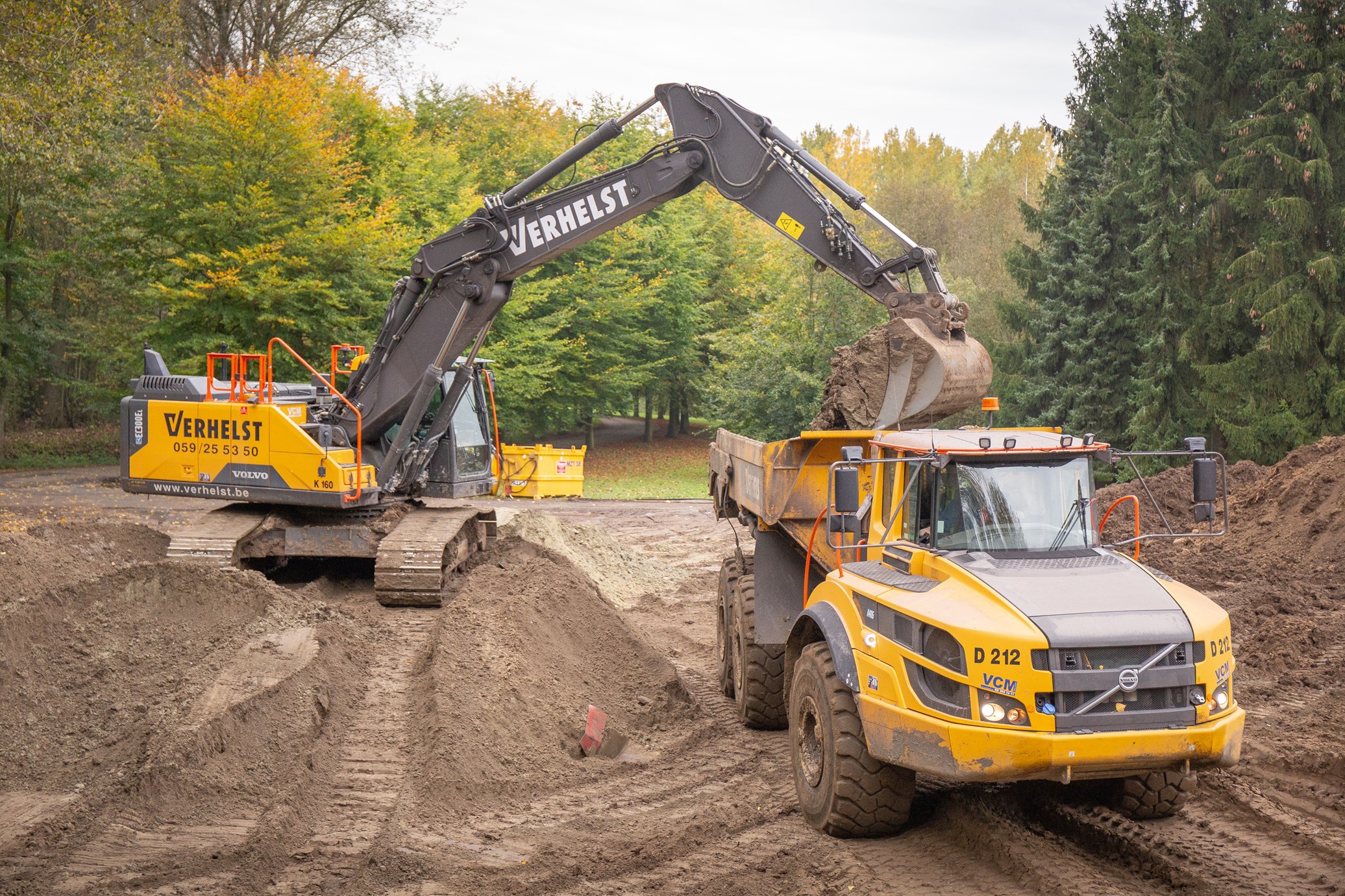 Om verschillende vrachtwagens, dumpers en gronddumpers te vullen wordt een Volvo EC300El ingezet. De Volvo, met een bedrijfsgewicht van 29,75 ton, beschikt over een Volvo D 8J motor met een vermogen van 179 kW. De maximale storthoogte bedraagt meer dan 7 meter, maar dat is op deze werf niet van toepassing voor de dumpers.