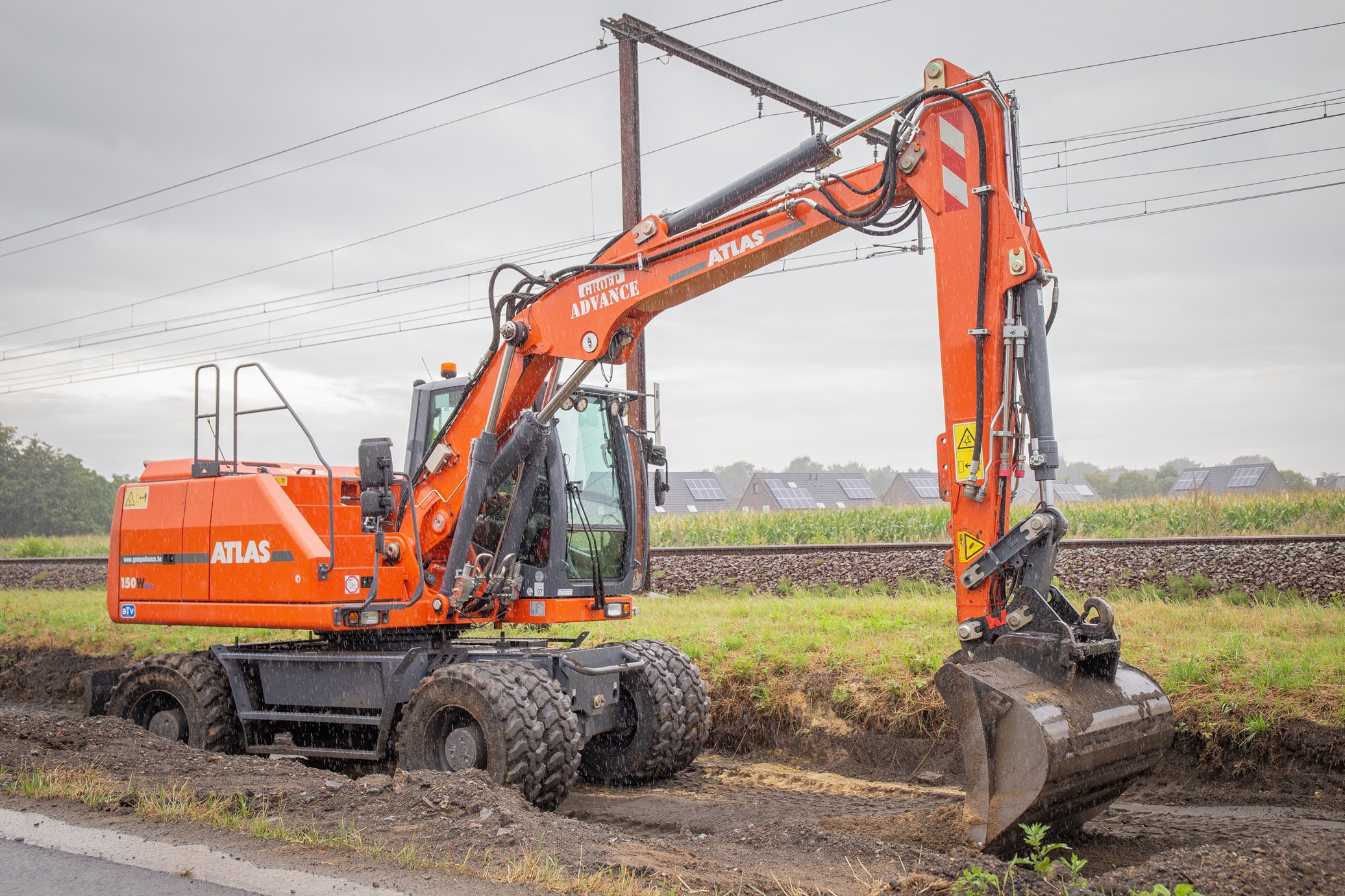 Atlas 150W van Groep Advance aan het werk langs de spoorlijn in Beernem (Saeyens Michiel)