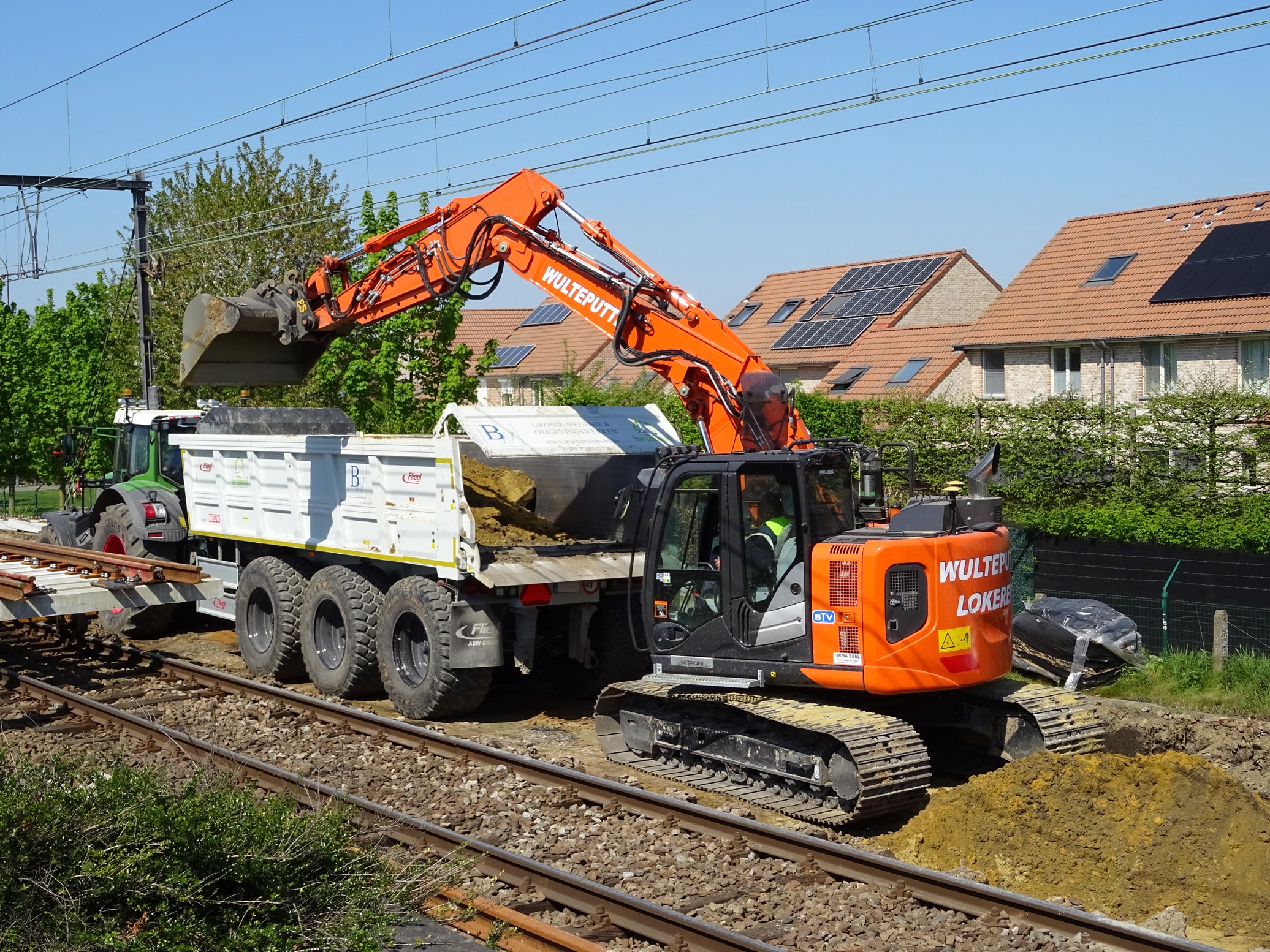 Hitachi ZX135US van de Firma Wulteputte in actie tijdens spoorwerken (PhotoFaber)