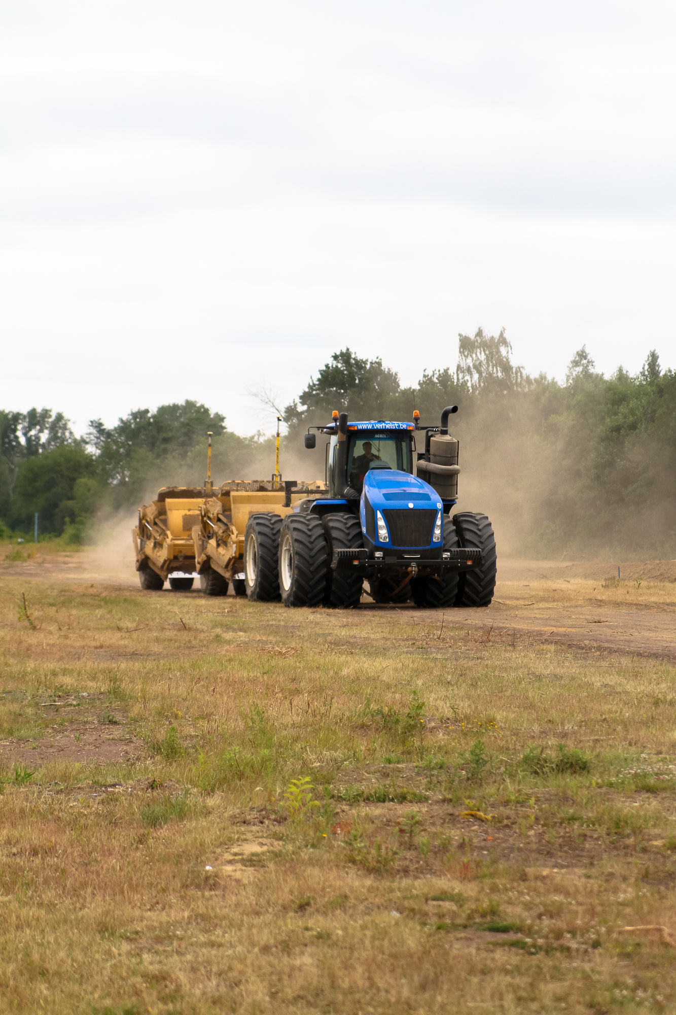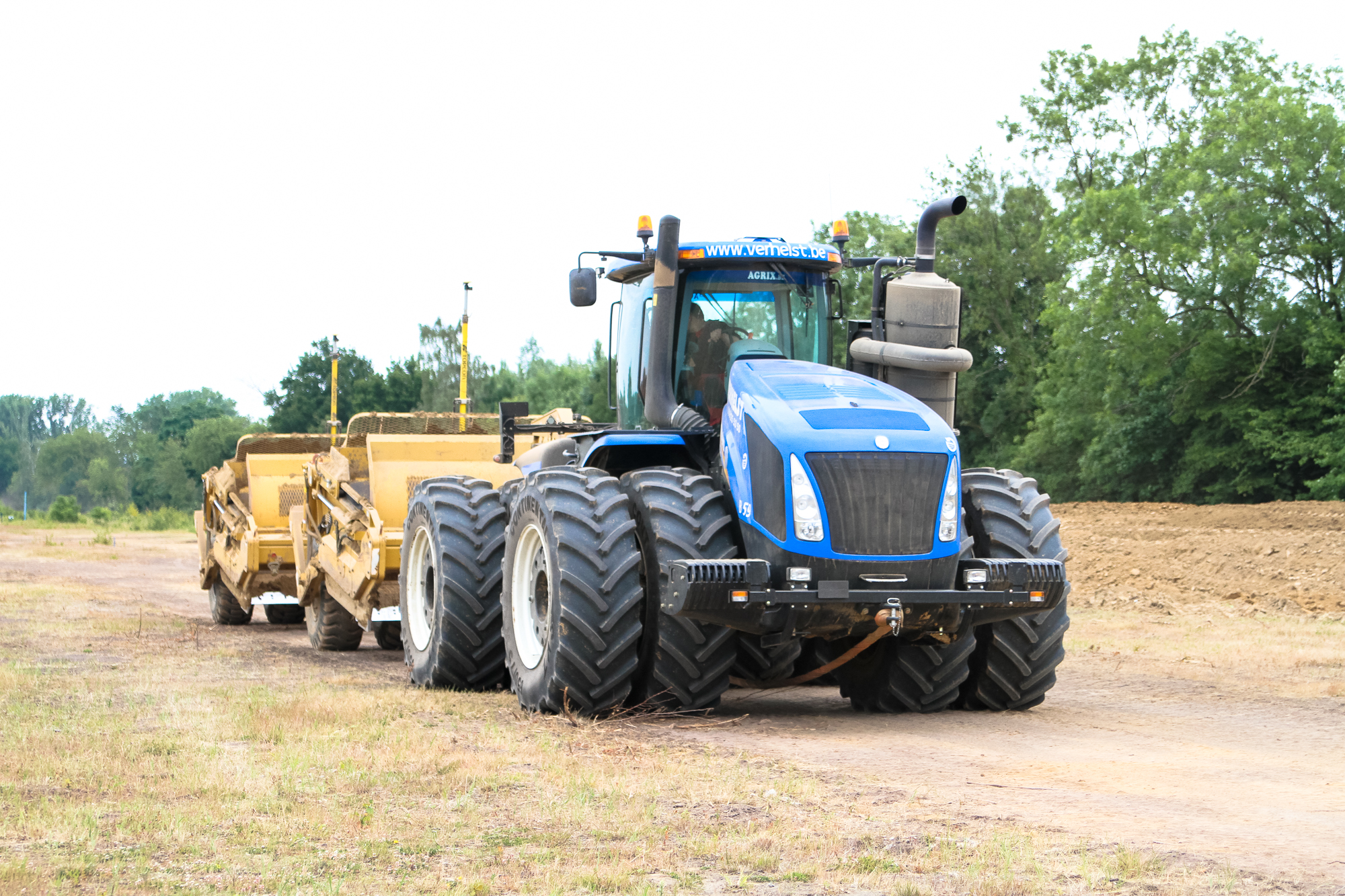 Voor grote projecten zijn grote machines nodig! Zo ook voor een golfterrein van 85 hectare. Groep Verhelst is aan de Hippodroom van Sterrebeek een nieuw terrein aan het aanleggen. Om de massa grond te verzetten die voor dit project nodig is, zetten zij een New Holland T9.700 in. De enige van zijn soort in Europa!