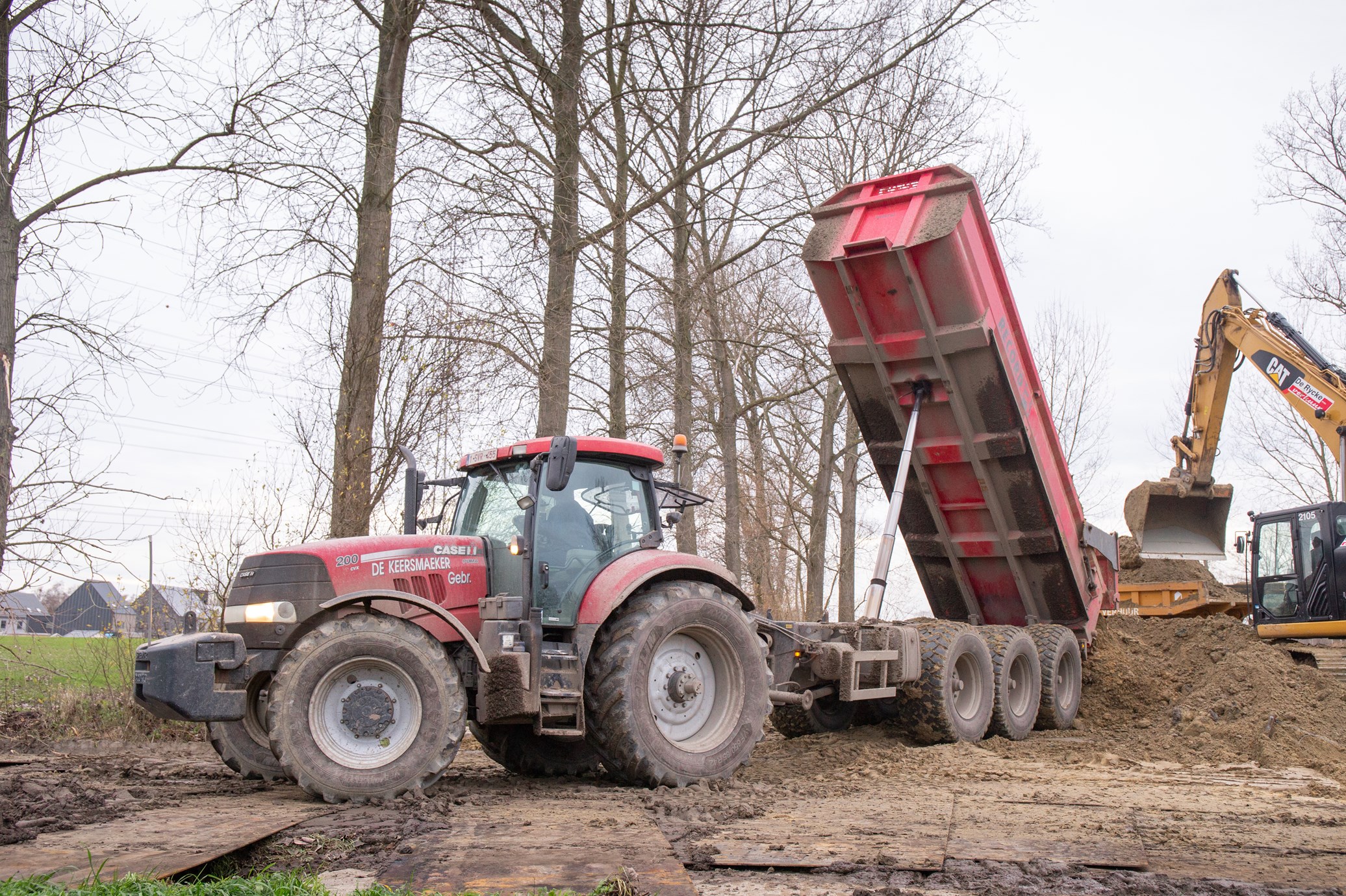 Als laatste werden maar liefst vier tractoren met gronddumpers ingezet om de grond te transporteren van Kruibeke naar Temse. Zo kon er in één keer konvooi meer dan 80 ton grond verzet worden.