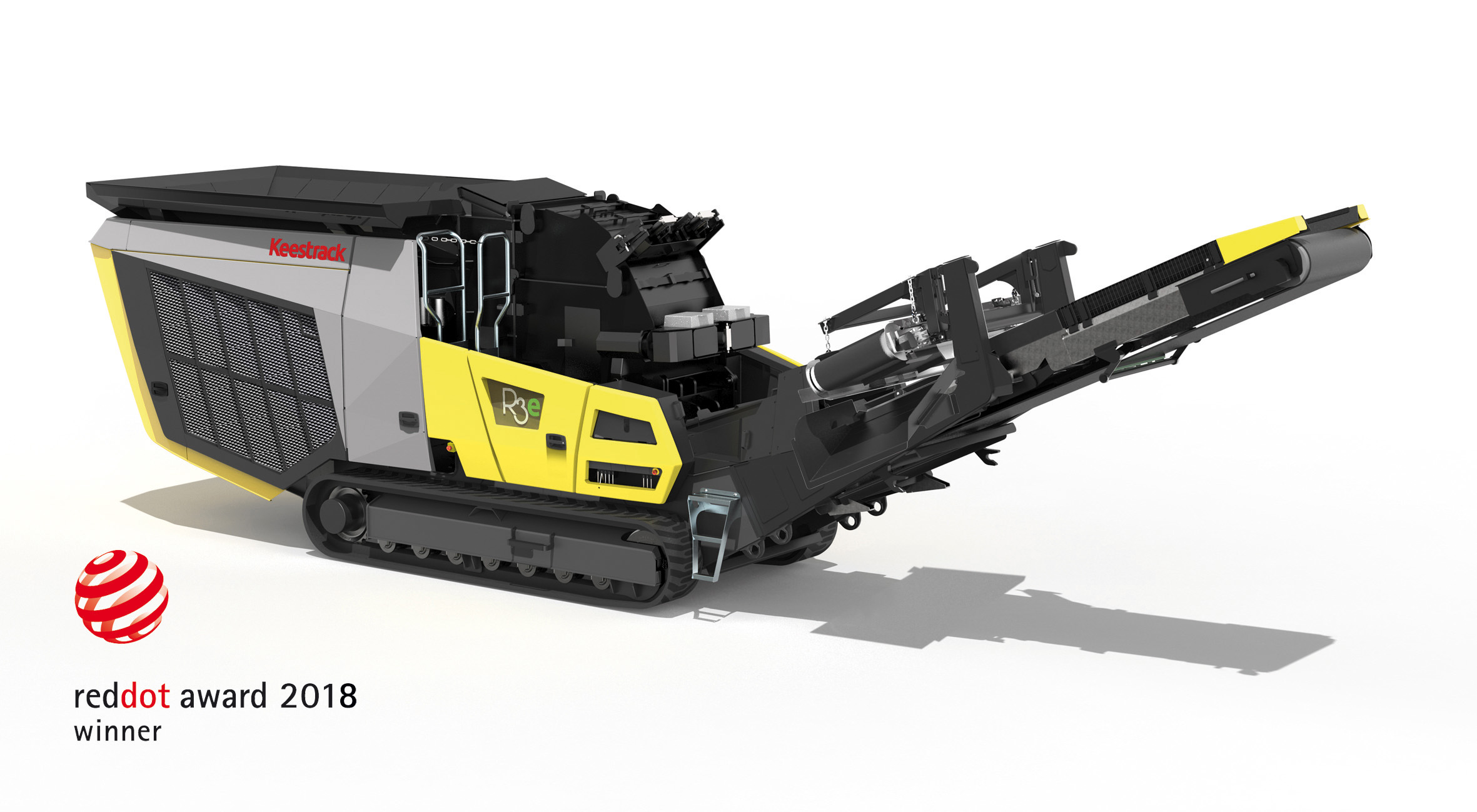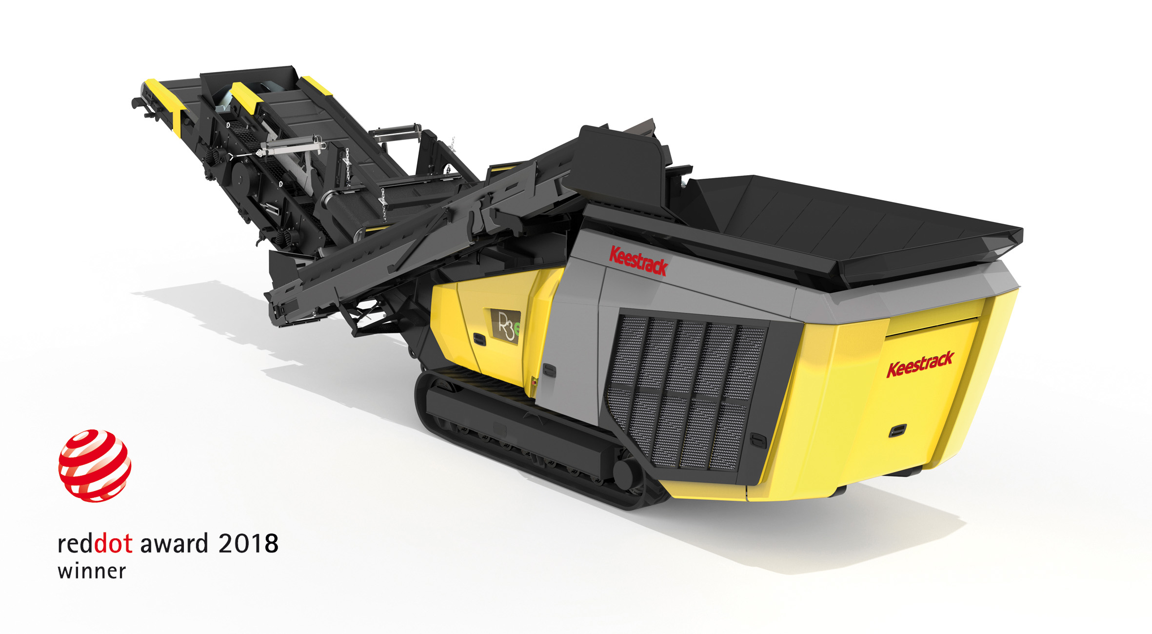 De nieuwe rupsmobiele Keestrack R3e werd tijdens de Intermat in Parijs gepresenteerd en is nu officieel bekroond met de Red Dot Award 2018 design prijs in de categorie industriële uitrustingen, machines en automatisering Op maandag 9 juli werd de award overhandigd aan de Keestrack delegatie op het Red Dot Award Gala in Essen Duitsland.