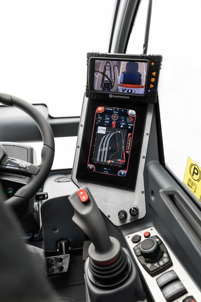 Bobcat’s roterende verreikers herkennen automatisch het aanbouwdeel waar ze mee worden gekoppeld dankzij RFID-technologie, die ook de corresponderende belastingsgrafieken op het display laadt. Als gevolg daarvan is de machine binnen enkele seconden klaar om veilig aan de slag te gaan en het aanraakscherm toont een dynamische belastingsgrafiek die de bestuurder in staat stelt om constant zicht te houden op het zwaartepunt van de lading.